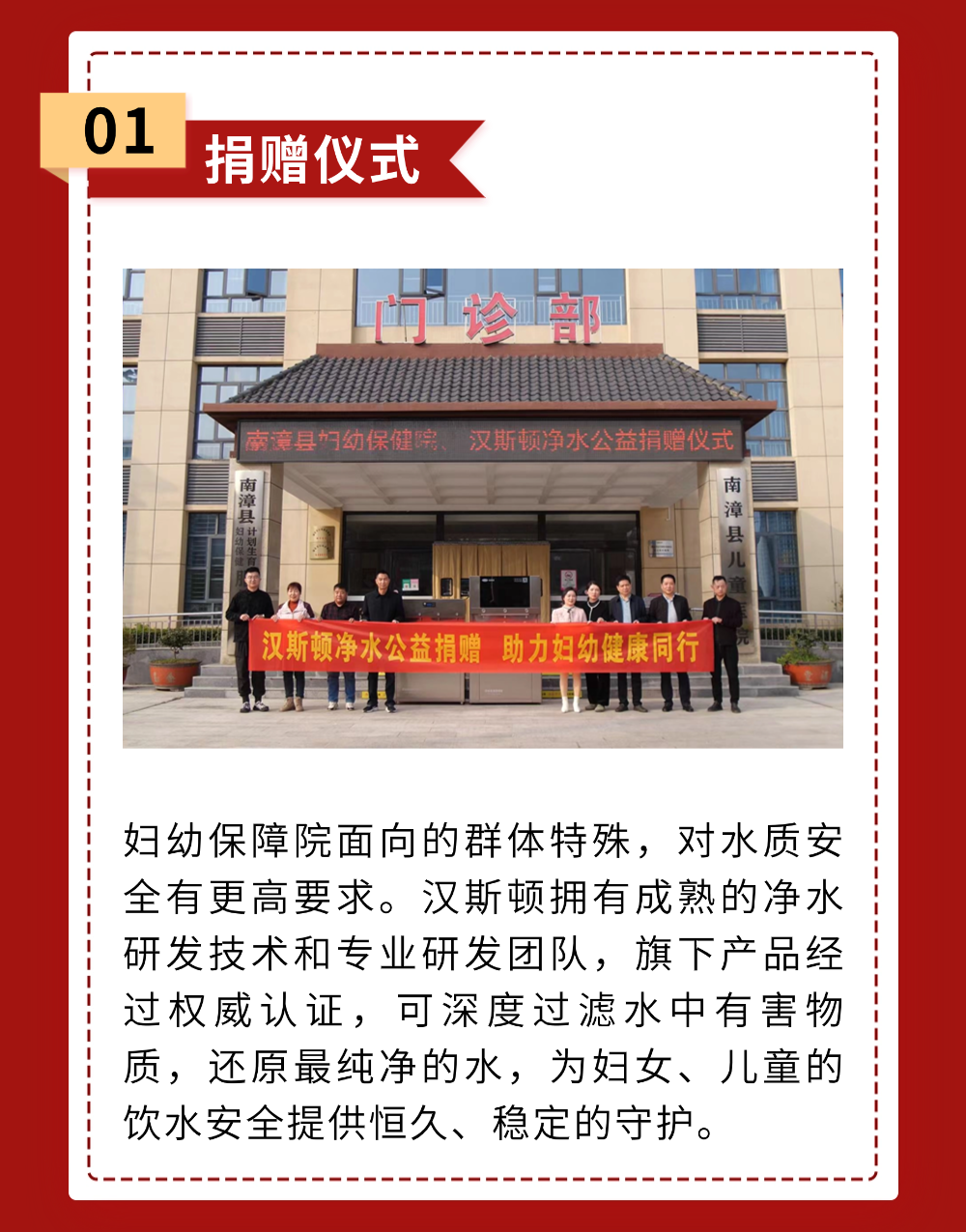 汉斯顿向南漳妇幼保障院捐助商用净水设备